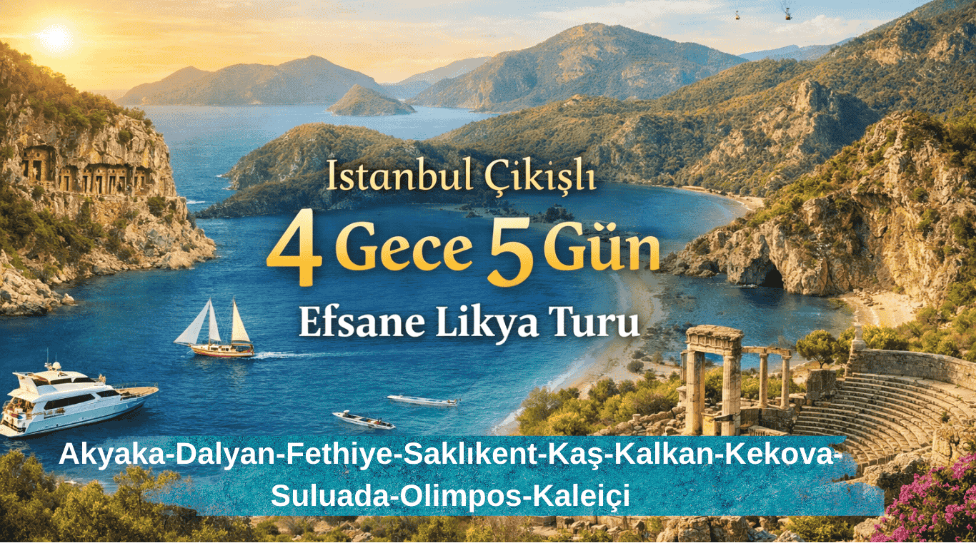 İstanbul çıkışlı Likya turu için şöyle düşün… İstanbul’dan çıkıyorsun ve birkaç saat sonra bambaşka bir dünyaya geçiyorsun. Turkuaz deniz, antik şehirler, gizli koylar… Bu turda hem dinleneceksin hem de “iyi ki gelmişim” diyeceğin anlar yaşayacaksın.