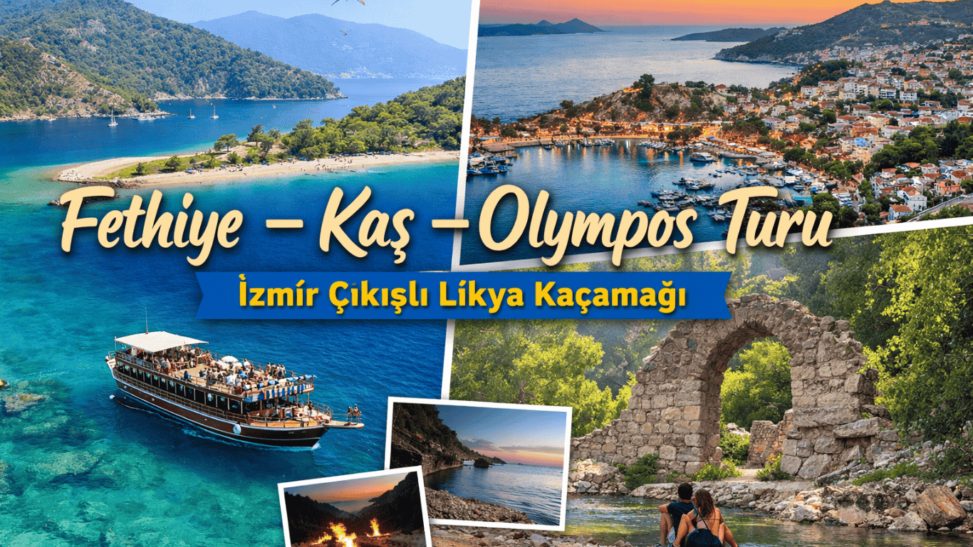 İzmir çıkışlı Fethiye Kaş Olimpos turu ile Ege’den Akdeniz’e uzanan; turkuaz koylar, saklı kanyonlar, antik kentler ve keyifli tekne turlarıyla dolu dolu bir 4 gün sunuyoruz. İzmir çıkışlı bu programda Fethiye, Saklıkent kanyonu, Kaş ve Olympos’un en güzel noktalarını keşfederken, denizin ve doğanın tadını çıkaracaksınız.
